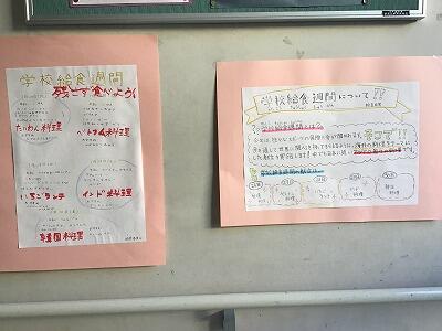 給食委員会が、学校給食週間のお知らせを作って、校内に掲示しました。