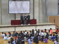 1月16日火曜日の6校時に中学校の入学説明会がありました。北押原中の3名の生徒のみなさんと担当の先生が来校し、中学校の生活・学習(授業)・部活動についてわかりやすく説明をしてくださいました。