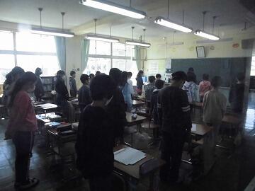 終了後の「黙祷」 手を合わせて祈る児童もいました。