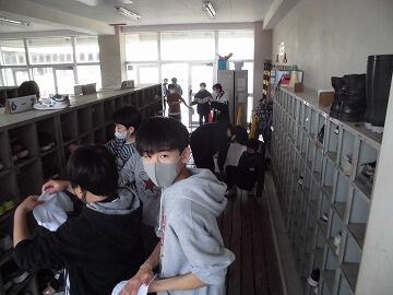 出発式です。簡単に昇降口で実施しました。