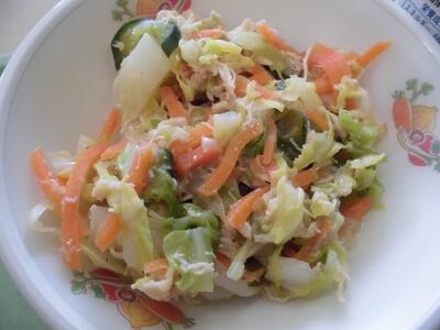 今日のメニューの「タイピーエン」は、肉や魚介類、野菜などを炒めて、春雨と鶏ガラ仕立てのスープを作る、熊本県の郷土料理です。もともとは、中国の料理に同じ名前の料理があり、アヒルのゆで卵を入れたたスープでした。日本に伝わって、独自の工夫が加えられ、オリジナルの料理となりました。