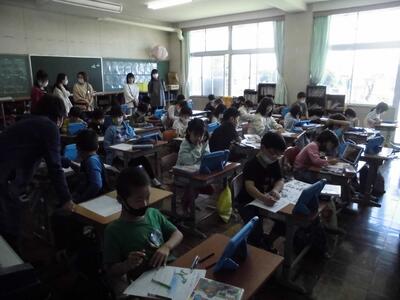 3年3組が一生懸命に観察をしスケッチをしていました。
