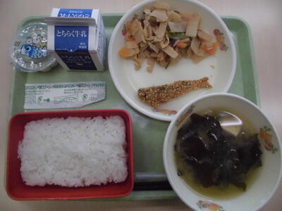 ご飯 牛乳 サワラの西京焼き のり和え 豚汁