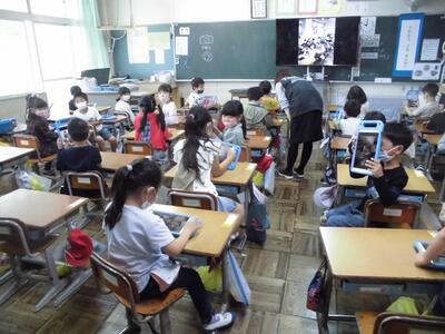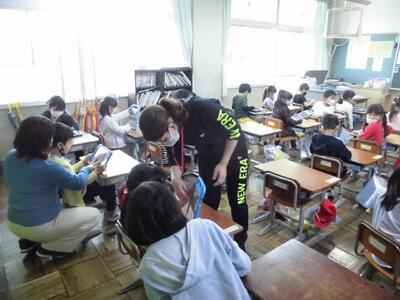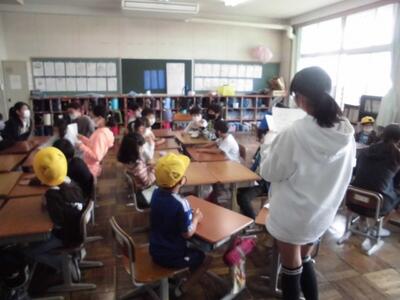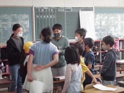 一昨年は、全校児童が体育館に集合し実施していましたが、今回は、縦割り班が15教室に分かれ、活動開始時や終了時は放送で行いました。最初は1年生は緊張のようすでしたが、自己紹介や活動を通してそれが消えていったように感じました。