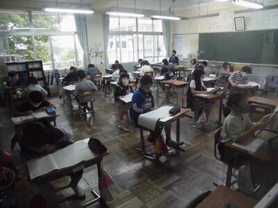 1校時目から開始しました。どの学級も、問題用紙を開く音、鉛筆で文字を書く音のみが聞こえてきました。