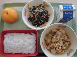 ご飯 牛乳 親子煮 ごま和え みかん