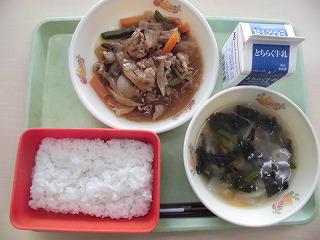 ご飯 牛乳 ビビンバの具 のっぺい汁