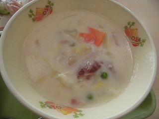 パインパン 牛乳 クラムチャウダー ツナマヨオムレツ ブロッコリーサラダ
