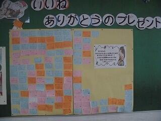 「いいね ありがとうのプレゼント」コーナーの台紙が不足し2枚目となりました。たくさんの「ありがとう」の言葉が貼られているます。