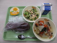木曜日;ご飯、牛乳、納豆、焼き栗コロッケ、どさんこ汁