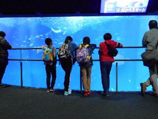 今回、同日程で海浜自然の家で活動していたすべての学校が、アクアワールド大洗に向かいます。水族館見学も、おみやげショップも、お昼ご飯を食べるフードコートも、混雑が予想されます。そのため、前もって、活動班で見学順路や、おみやげのを買う時間、お昼をとる時間を相談しました。ピーク時刻を避けるために少し早い時間にお昼ご飯にしていたグループもありました。