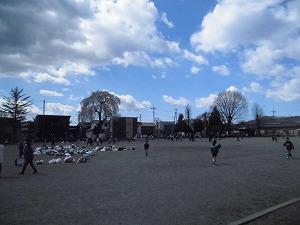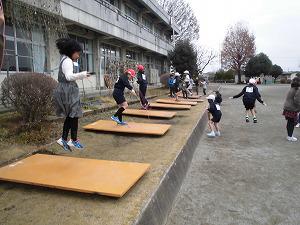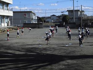 日中は暖かな天候で、体育の授業では8割以上の児童が半袖、ハーフパンツ姿でした。
