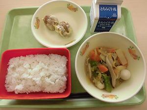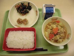 さて、本日の給食メニューは、県産品が多く使用されています。また、鹿沼市独自メニュー「インド煮」も登場です。