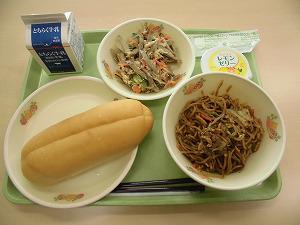 【今日の給食】バターロール 牛乳 ハンバーグカラフルソース チーズポテト
