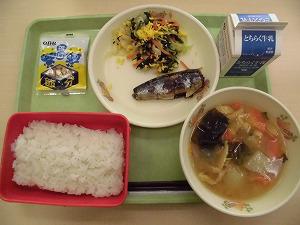 【今日の給食】ご飯 牛乳 かつおのゆずみぞれ煮 磯煮 豆乳入り味噌汁