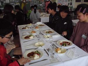 さて、本日の給食は、クリスマス献立で、ケーキは事前に選択し1つを食べます。