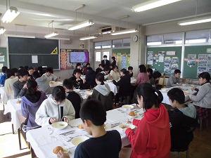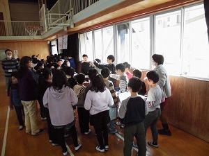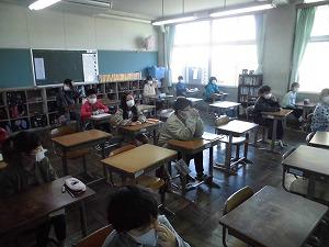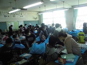 この季節はインフルエンザの罹患者が増加する時期です。現在、本校の罹患者は5名であります。さらに広まらないように、給食ではグループで食べないこと(前を向いて個々に食べる)、休み時間の換気やうがい手洗いを励行することを指導しています。