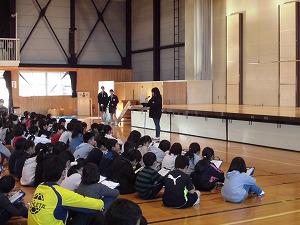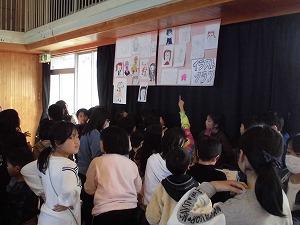 12月13日(金)に、4年2組では以前に学級会での話し合いで決まった「えんげき会しよう」の実践が行われました。話し合いで決まった内容や約束をもとに、児童が準備し、児童の運営で行われました。2学期の出来事や季節にちなんだ3つの劇が披露され、児童は一生懸命に演技したり参観をしていました。