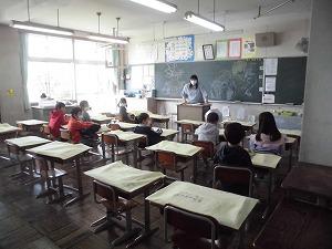 校庭からは体育の長縄のかけ声、音楽室からはリコーダーの音色が聞こえ、しっかり学習に取り組んでいることを感じ取れます。
