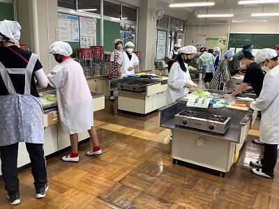 前回の学習で準備から後片付けまでの計画を立て、今日の調理実習に臨みました。