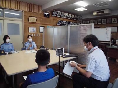 通常ですと校庭で実施する交通安全教室ですが、今回は校長室をスタジオに、各教室にライブ配信をする形式の「交通安全教室」を開催しました。