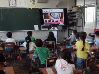 鹿沼市交通対策課および鹿沼警察署の方から、交通安全で気を付けることを具体的に教えていただくことができました。児童は、各教室で大型ディスプレイを見て参加しました。