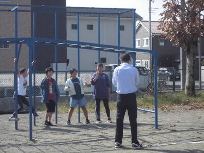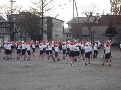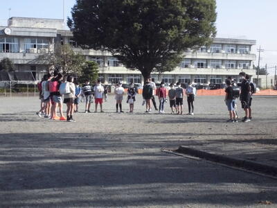 日差しはあったものの寒い風吹く中での初の校庭での練習が開始しました。