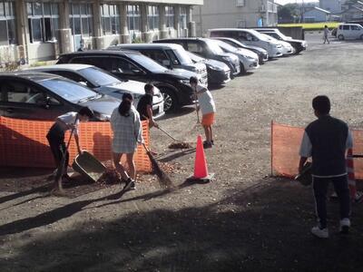 そこで、1年ぶりに全校での除草を行いました。熱中症予防のために、朝の涼しい時間帯での実施です。