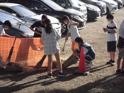 背の高い草を狙う児童、小さな草を丁寧にとる児童、途中で虫を発見しそれに夢中になってしまう児童など、様々な光景が見られましたが、みんな一生懸命に除草をしました。最後には、環境委員会の児童が除草した草をゴミステーションに運んでくれました。