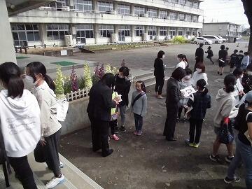 出発式です。簡単に昇降口で実施しました。