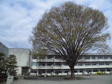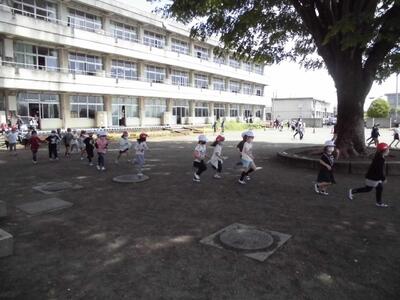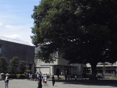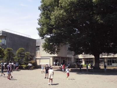 本校のシンボルツリーの大欅が大きな日陰を作ってくれています。児童は元気に走り回っています。