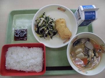ごはん 牛乳 カツオのフライ 塩昆布和え 豚汁