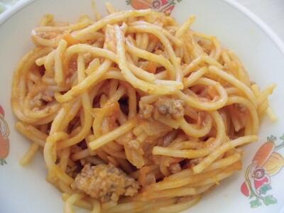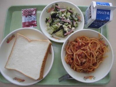 ツナトマトスパゲティ 牛乳 イタリアンサラダ 食パン チョコクリーム