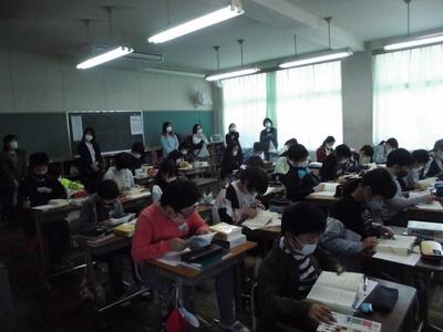 本日は、久しぶりの給食中の放送による読み聞かせです。いつもの声が聞こえてきました。お話がとても上手なので、放送だけでも本の世界に入ってしまいます。