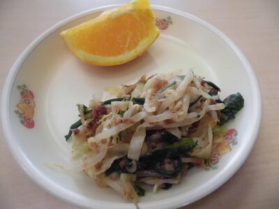 ごはん 牛乳 親子煮 おかか和え オレンジ