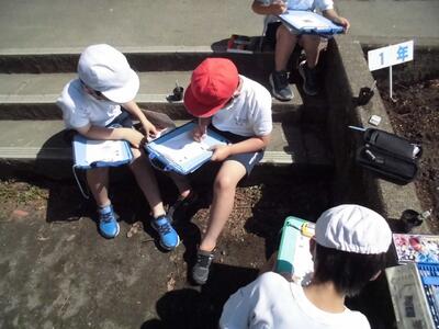 3年3組が一生懸命に観察をしスケッチをしていました。