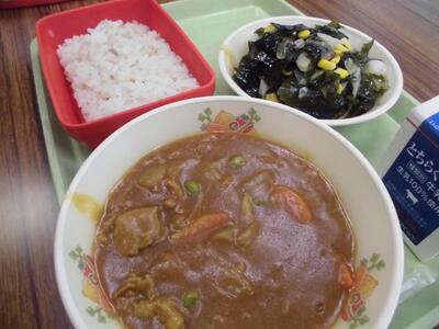 麦ごはん 牛乳 ポークカレー 海藻サラダ
