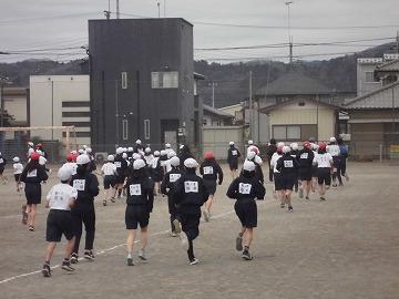持久走大会を明日に控え、寒さを吹き飛ばす最後の練習風景です。