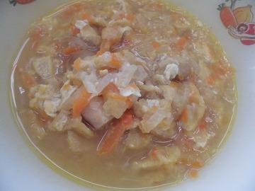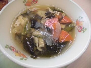 今日のメニューの「のっぺい汁」は、日本全国で親しまれている郷土料理の1つです。もとは、肉や魚を含まない精進料理の1つで、そこにとろみをつけた具だくさんのしるもののことです。里芋、大根、白菜、ねぎの冬が旬の食品が入っています。具だくさんで栄養たっぷりな汁物です。