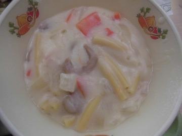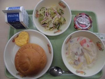 パインパン 牛乳 クラムチャウダー ツナマヨオムレツ ブロッコリーサラダ
