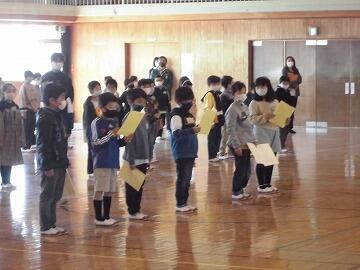感染症対策のため大幅に方法を改善し、各学年が出入りをしながら、学年ごとに感謝の気持ちを伝える会となりました。各学年の発表の後に6年生からは自然に拍手がおこるなど、下級生の気持ちが伝わった思います。
