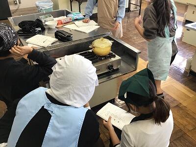鍋が沸騰してくるとおいしそうな香りが家庭科室に広がりました。