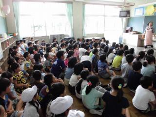 毎週水曜日に学校に来てくださるKLVの皆さんが、月に1、2回のペースで読み聞かせを中心に、低学年向け、高学年向けと内容を考えてくださり、お話をしてくださいます。学級、学年を越えて参加でき、対象学年以外の子供たちの参加も受け入れます。初日の今日は、120人余りの子供たちが参加し、大変盛況でした。KLVさんは、毎週水曜の給食の朗読放送もしてくださいました。大変お世話になりました。次の機会を楽しみにしています。