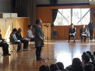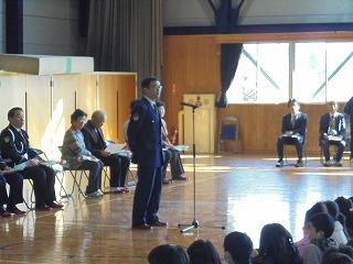 「安心安全対策」関係から、自治会長さん、防犯協力会長さん、交通指導員さん、駐在所のお巡りさん、見守りボランティアさん達、「学校支援ボランティア」関係からは図書館ボランティア(KLV)さん達、「クラブ活動」関係からは手話クラブの講師さんらが来校してくださいました。