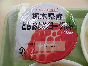 今日は「さつきランチ」です。栃木県や鹿沼市で作られた、おいしい食べ物を使った給食です。今日のメニューは、鹿沼市で誕生したインド煮と栃木県の特産物「かんぴょう」を使ったサラダ、そして生産量全国2位のおいしい生乳を使ったヨーグルトです。パンの米粉も栃木県産です。栃木県は、おいしいものがたくさん取れますね。自然豊かで、水もおいしいすばらしい環境と命をいただくことに感謝して食べててほしいです。