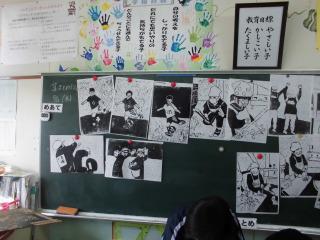 12月、4・5・6年生は木版画に取り組んでいますが、今日2校時に4、6年生が刷っていました。