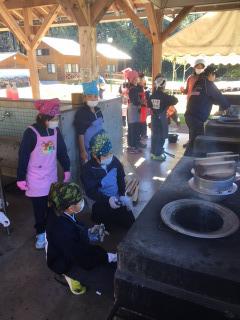 後片付けの、かまどの掃除や鍋、釜などの道具の洗浄はとても苦労しました。その苦労はねらい通りのもので、子供たちは、日頃の便利な生活に感謝し、不自由な場面に出くわしても乗り越えることの大切さを学んだことと思います。