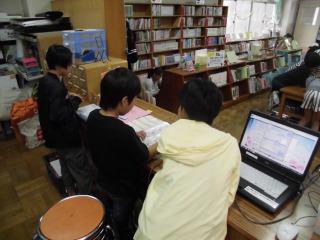 各教室では本を読んだり、絵を描いたり、学級会の計画委員会が活動していたりしましたが、学校図書館にはたくさんの子供たちがやってきて読書にふけっていました。この夏電子化された図書の貸し出しも運用されていて、図書委員さんがカウンターでバーコードリーダーとパソコンで受付けをしていました。