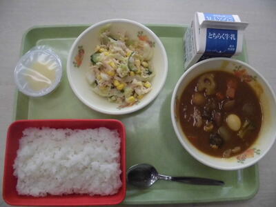ごはん 牛乳 野菜のゴロゴロスープカレー ツナサラダ オレンジゼリー