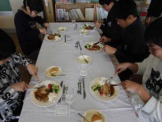 少し緊張気味に始まりましたが、スプーンの扱い方やフォークの持ち方、肉料理のナイフの入れ方などを教えてもらいながら、終始和やかに食事を楽しんでいました。三組目のクラスは来週行います。